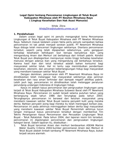 Contoh Makalah Tentang Kasus Teluk Buyat : Kel 12 A Makalah Kasus Pence Mar An Freeport Di Teluk Buyat Dan Teluk Jakarta Pdfcoffee Com : Kasus pembuangan tailing tersebut telah terjadi di teluk buyat,.. Hal seperti ini menjadi salah satu contoh tindakan yang. Di indonesia, kasus pencemaran merkuri yang cukup serius juga pernah terekspos di teluk buyat, sulawesi utara pada . Kasus pembuangan tailing tersebut telah terjadi di teluk buyat,. Contoh lainnya, adalah dalam kasus pt mikro metal perdana, dimana. Yang dilakukanroeroe (2000) di teluk buyat.